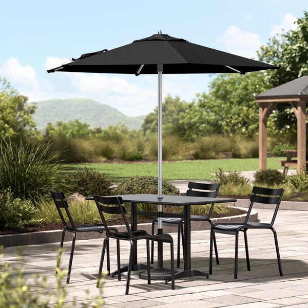 Enjoy the outdoors under the pleasant shade of this Lancaster Table & Seating 7 1/2' raven black push lift silver aluminum umbrella!