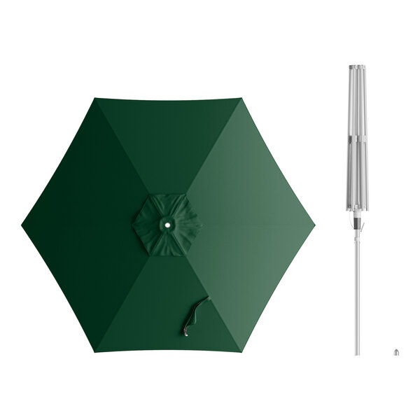 Lancaster Table & Seating 7 1/2' Round Forest Green Push Lift Silver Aluminum Umbrella