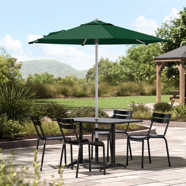 Enjoy the outdoors under the pleasant shade of this Lancaster Table & Seating 7 1/2' forest green push lift silver aluminum umbrella!