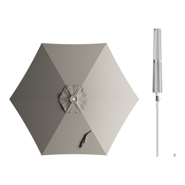 Lancaster Table & Seating 7 1/2' Round Fog Gray Push Lift Silver Aluminum Umbrella