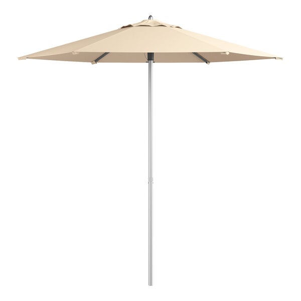Lancaster Table & Seating 7 1/2' Round Sand Push Lift Silver Aluminum Umbrella