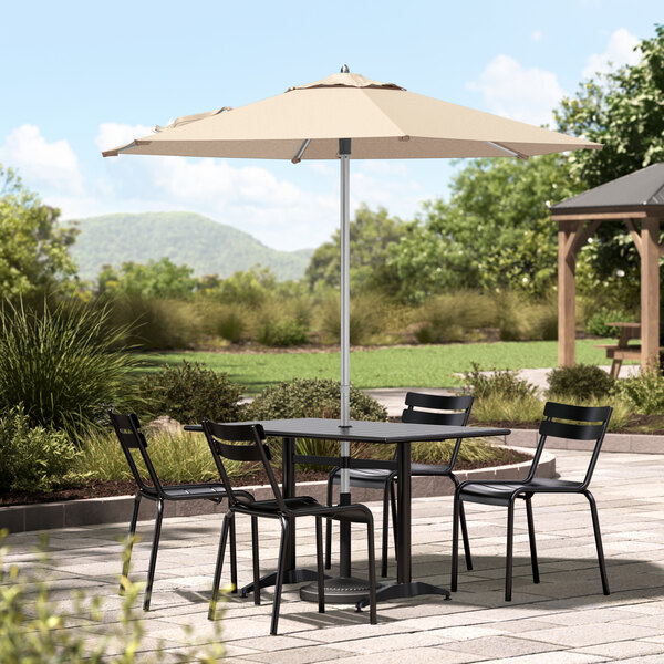 This umbrella's silver powder-coated aluminum frame is built to withstand consistent use in your establishment. Its 1 1/2" pole diameter makes it compatible with select umbrella bases (sold separately), and you can prolong the life of your canopy with a compatible umbrella cover (sold separately). Reach for this Lancaster Table & Seating umbrella to enhance your outdoor space and keep guests happy and comfortable!
