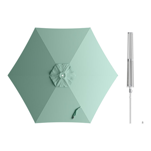 Lancaster Table & Seating 9' Round Glacier Blue Push Lift Silver Aluminum Umbrella
