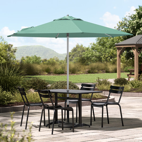 This umbrella's silver powder-coated aluminum frame is built to withstand consistent use in your establishment. Its 1 1/2" pole diameter makes it compatible with select umbrella bases (sold separately), and you can prolong the life of your canopy with a compatible umbrella cover (sold separately). Reach for this Lancaster Table & Seating umbrella to enhance your outdoor space and keep guests happy and comfortable!