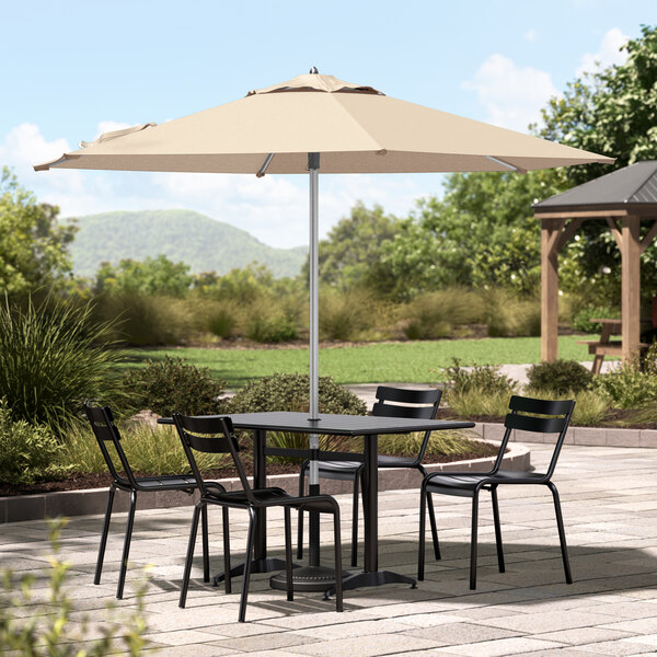 Lancaster Table & Seating 9' Round Sand Push Lift Silver Aluminum Umbrella