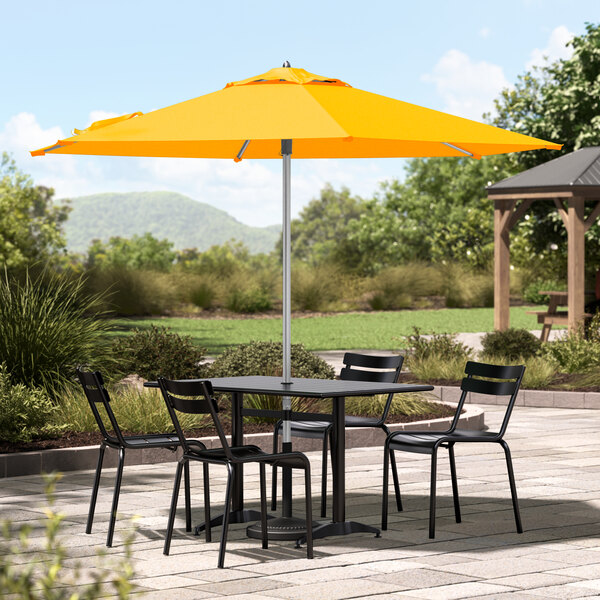 Lancaster Table & Seating 9' Round Sunflower Yellow Push Lift Silver Aluminum Umbrella