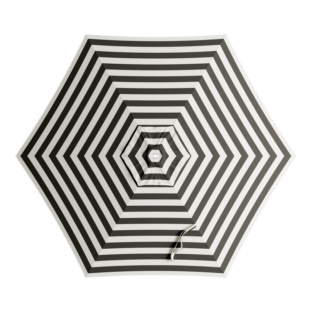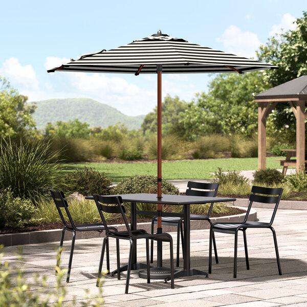 Lancaster Table & Seating 7 1/2' Round Black and White Stripe Push Lift Woodgrain Aluminum Umbrella
