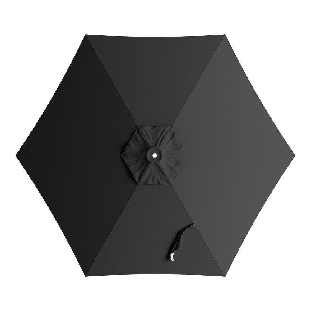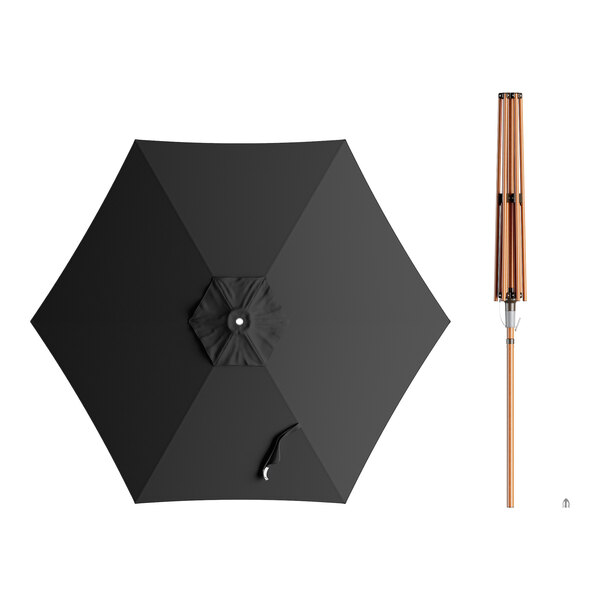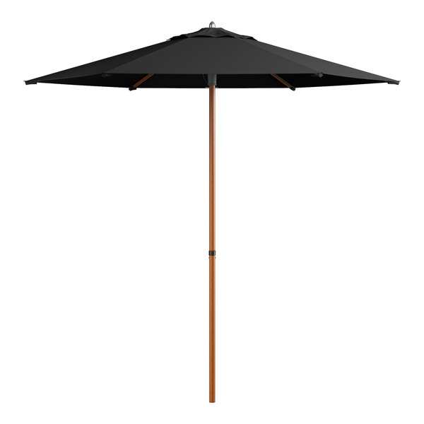 Lancaster Table & Seating 7 1/2' Round Raven Black Push Lift Woodgrain Aluminum Umbrella