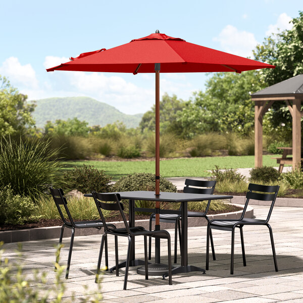 This umbrella's powder-coated aluminum frame features a woodgrain finish for a natural look, and it's built to withstand consistent use in your establishment. Its 1 1/2" pole diameter makes it compatible with select umbrella bases (sold separately), and you can prolong the life of your canopy with a compatible umbrella cover (sold separately). Reach for this Lancaster Table & Seating umbrella to enhance your outdoor space and keep guests happy and comfortable!