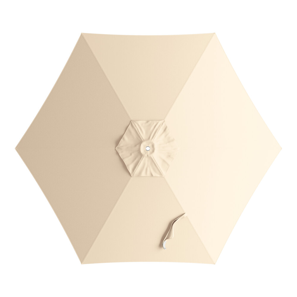 This umbrella's powder-coated aluminum frame features a woodgrain finish for a natural look, and it's built to withstand consistent use in your establishment. Its 1 1/2" pole diameter makes it compatible with select umbrella bases (sold separately), and you can prolong the life of your canopy with a compatible umbrella cover (sold separately). Reach for this Lancaster Table & Seating umbrella to enhance your outdoor space and keep guests happy and comfortable!