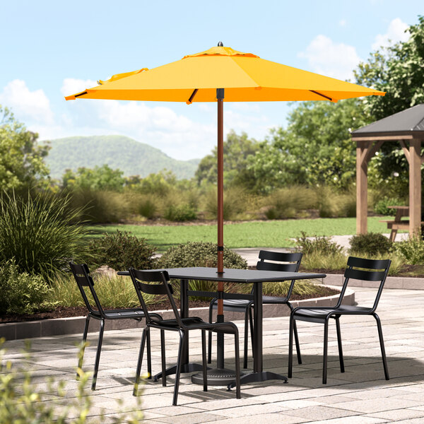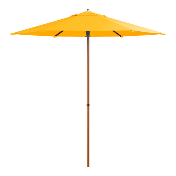 Lancaster Table & Seating 7 1/2' Round Sunflower Yellow Push Lift Woodgrain Aluminum Umbrella
