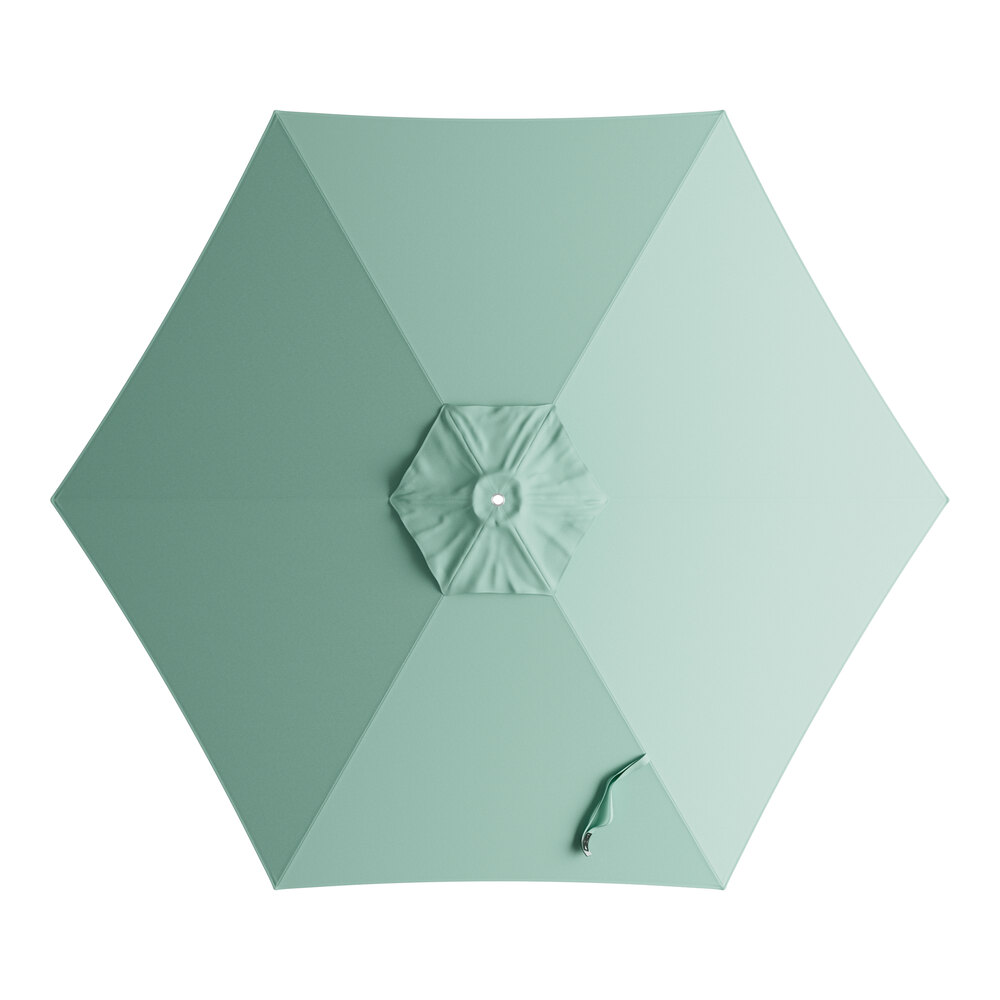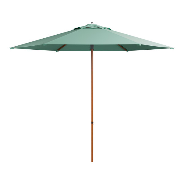 Lancaster Table & Seating 9' Round Glacier Blue Push Lift Woodgrain Aluminum Umbrella