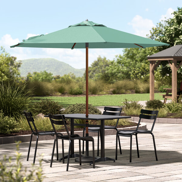 Enjoy the outdoors under the pleasant shade of this Lancaster Table & Seating 9' glacier blue push lift woodgrain aluminum umbrella!