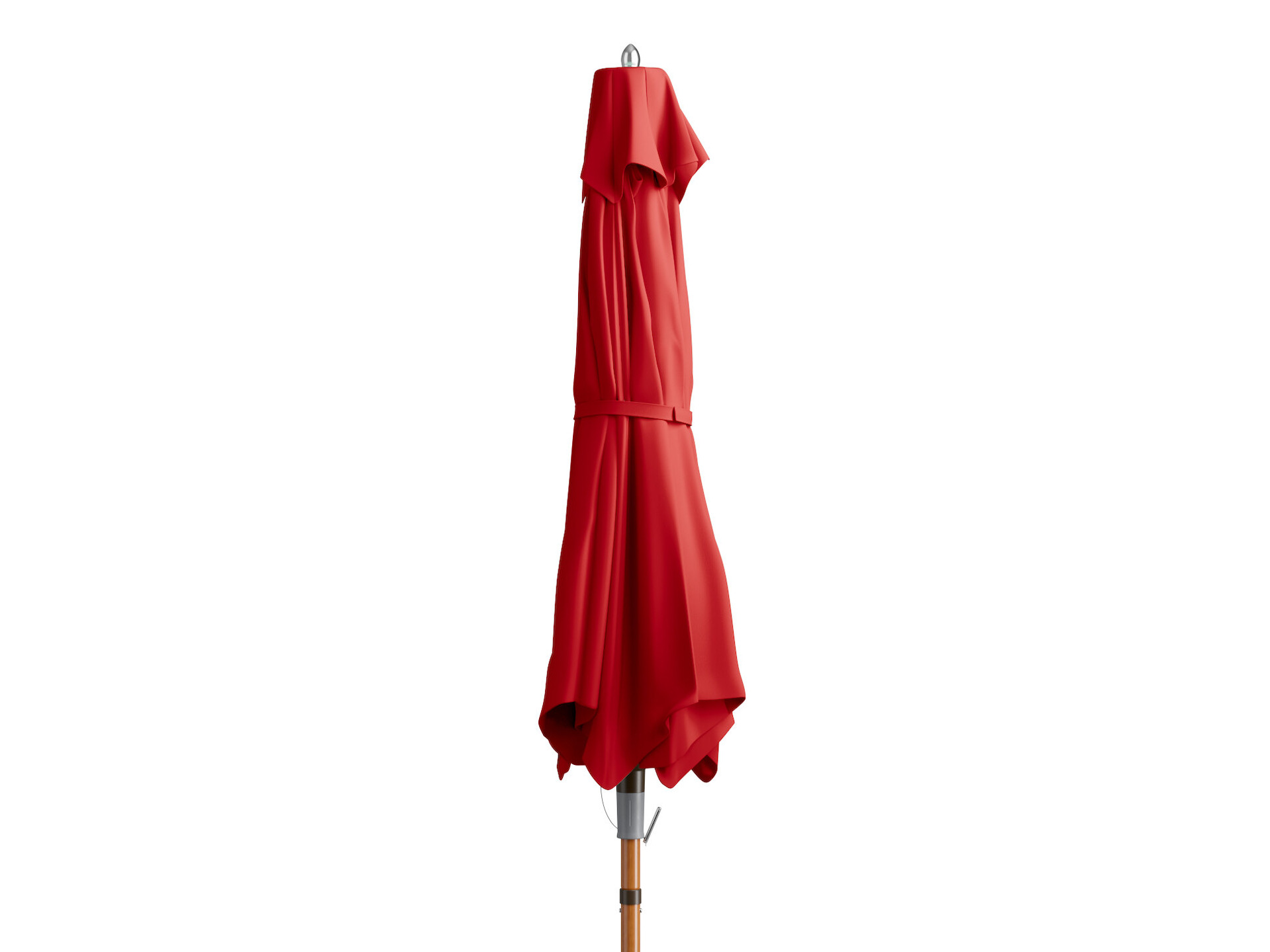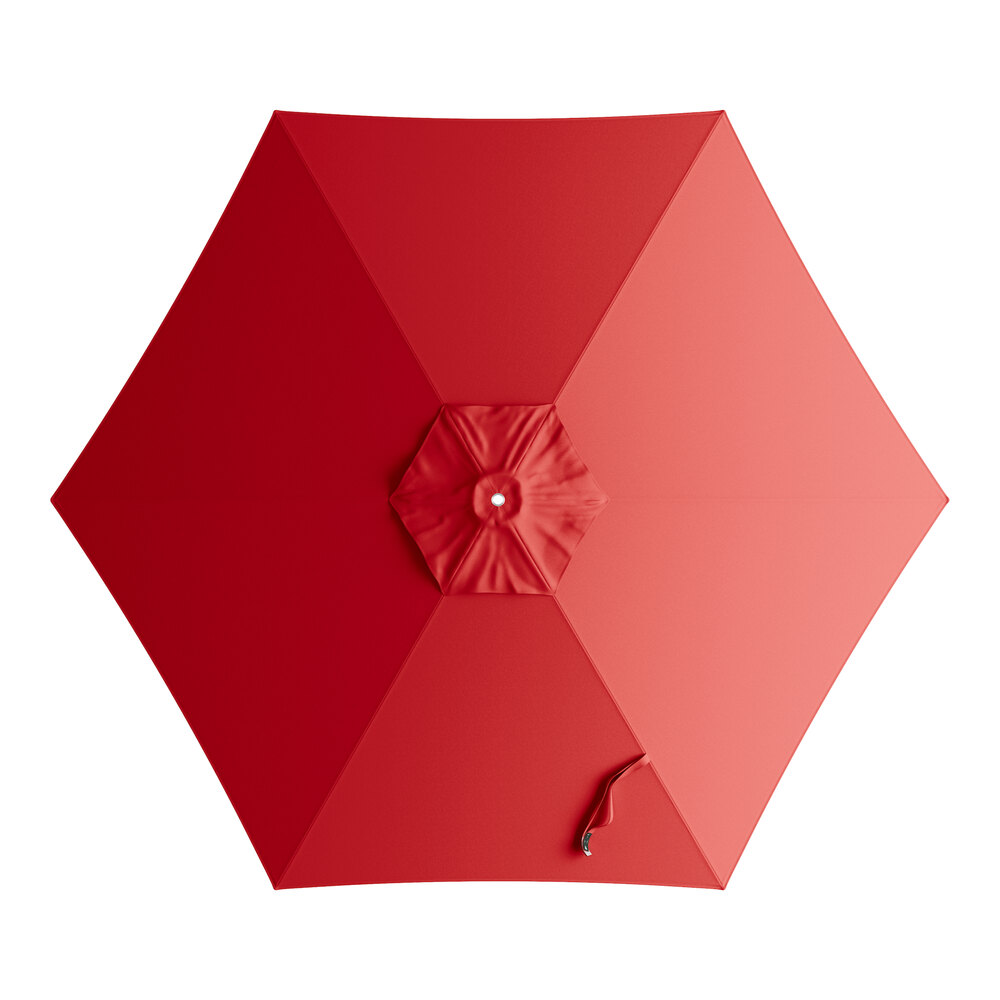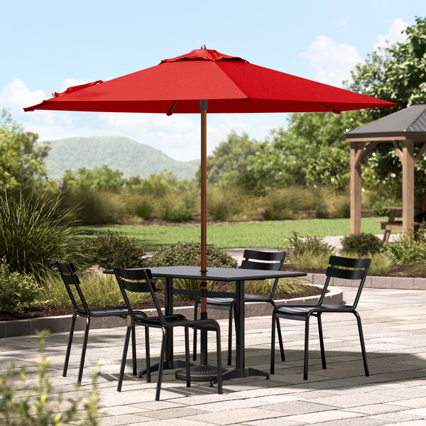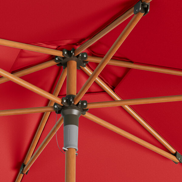 Lancaster Table & Seating 9' Round Carnation Red Push Lift Woodgrain Aluminum Umbrella