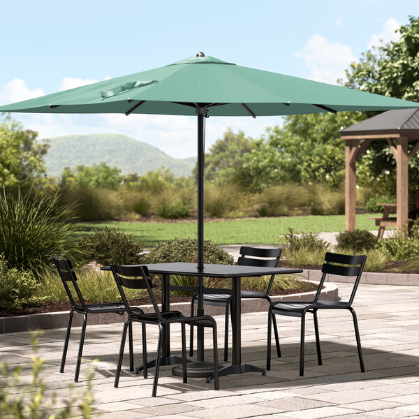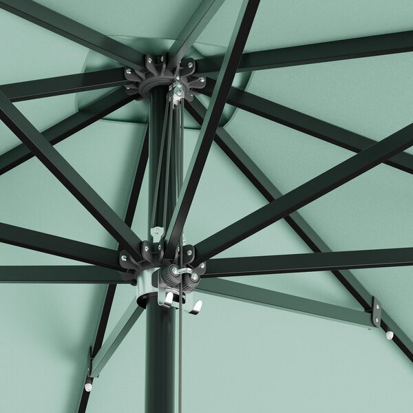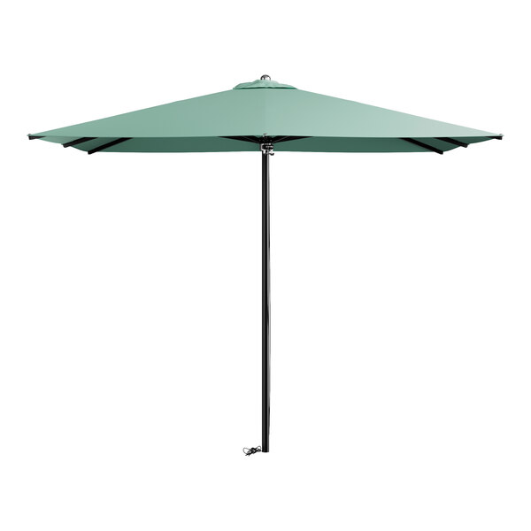 Lancaster Table & Seating 9' Square Glacier Blue Pulley Lift Black Aluminum Umbrella