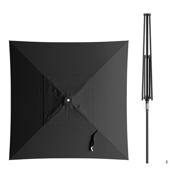 Lancaster Table & Seating 6 1/2' Square Raven Black Push Lift Black Aluminum Umbrella