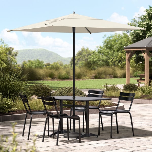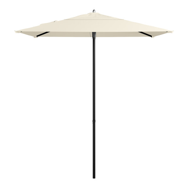 Lancaster Table & Seating 6 1/2' Square Shell Beige Push Lift Black Aluminum Umbrella