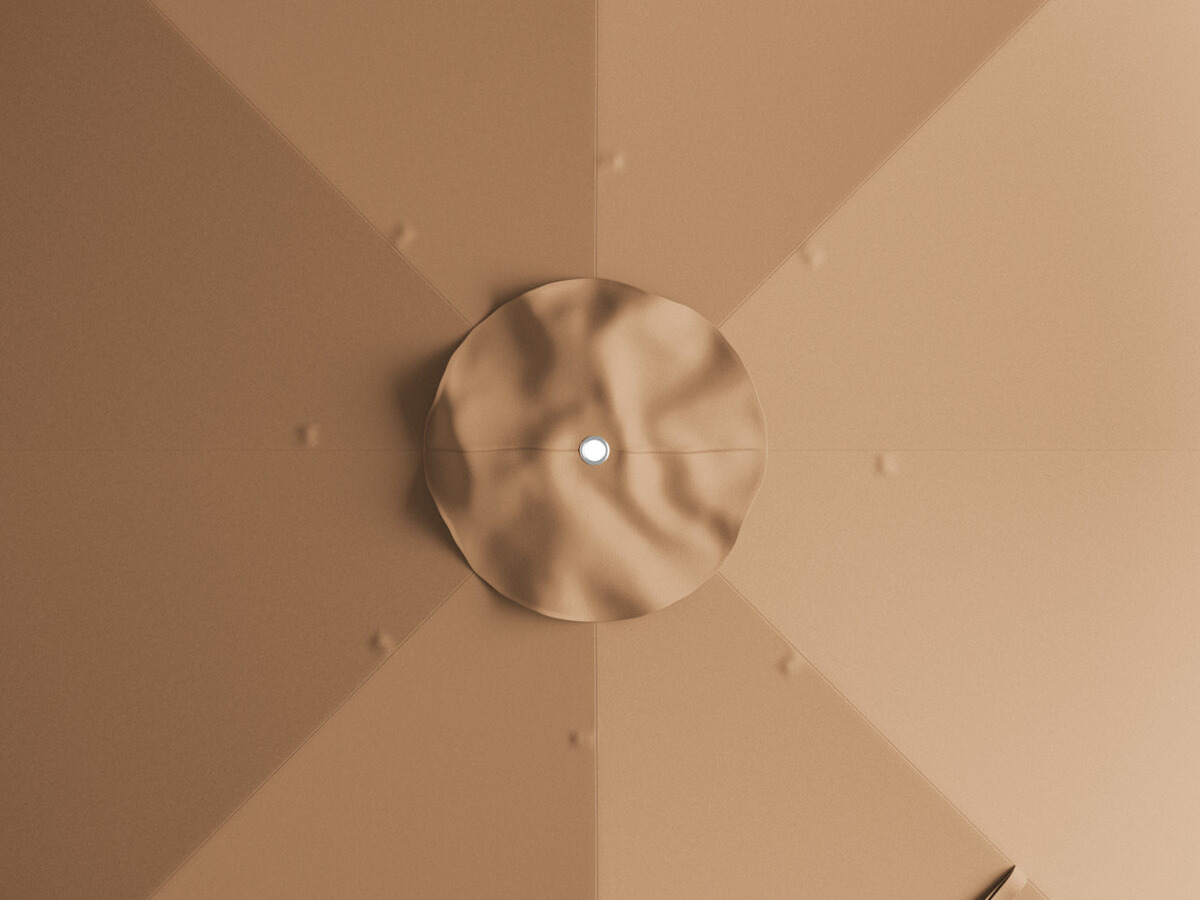 This umbrella repels dirt and is easy to clean at the end of the day.