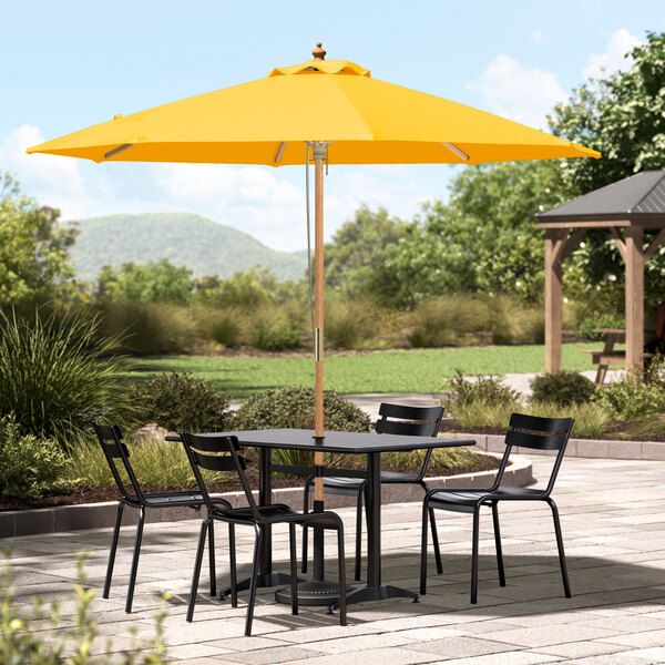 Lancaster Table & Seating 9' Round Canary Yellow Pulley Lift Bamboo Umbrella