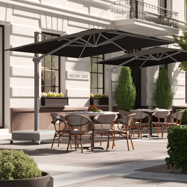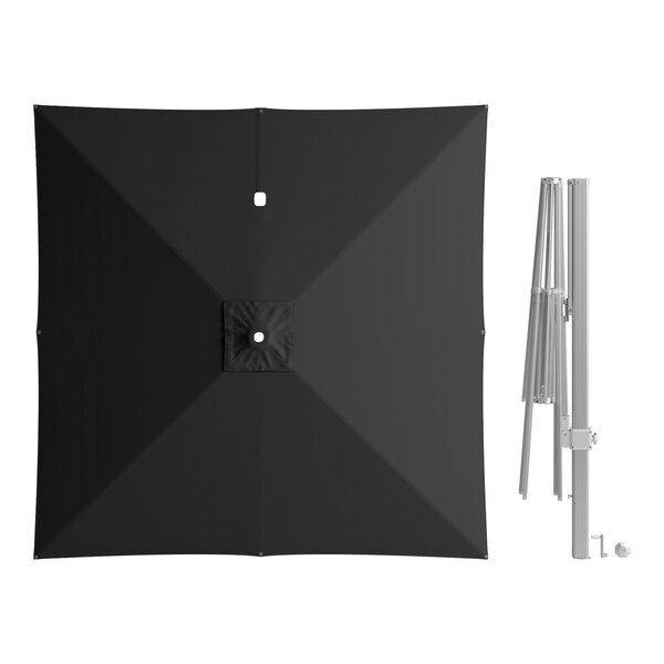 Lancaster Table & Seating 10' Square Raven Black Crank Lift Silver Aluminum Cantilever Umbrella
