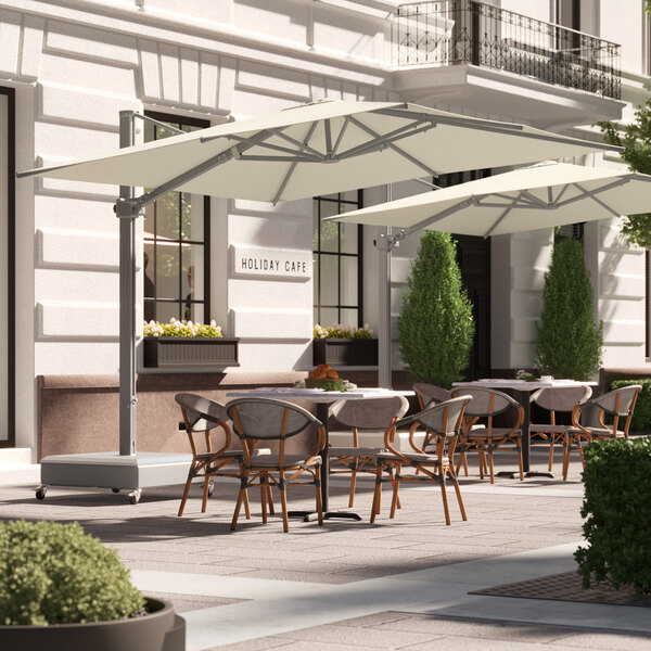 Lancaster Table & Seating 10' Square Shell Beige Crank Lift Silver Aluminum Cantilever Umbrella