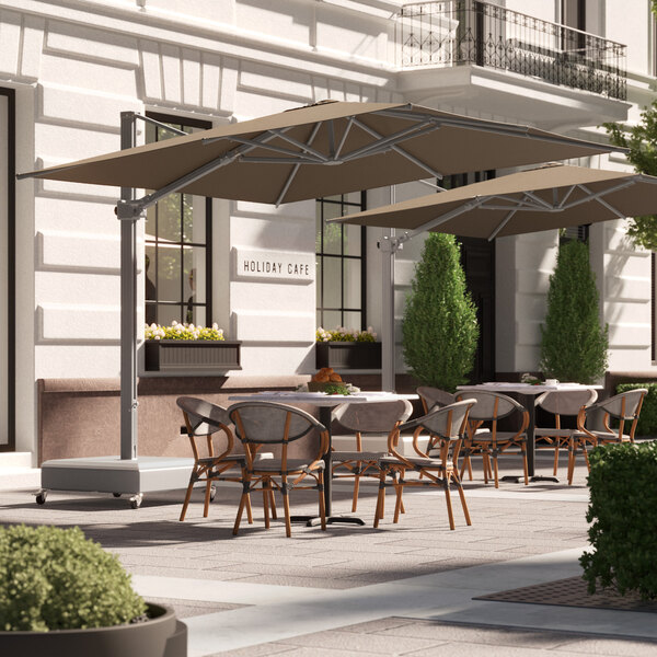 Lancaster Table & Seating 10' Square Tundra Tan Crank Lift Silver Aluminum Cantilever Umbrella