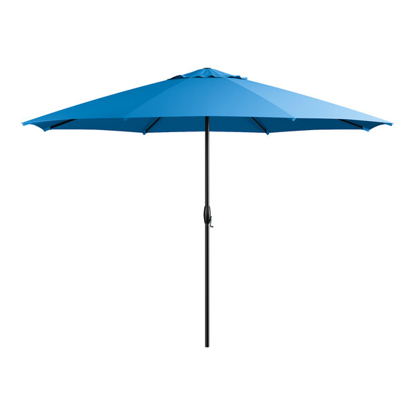 Lancaster Table & Seating 11' Round Pacific Blue Crank Lift Black Steel Umbrella