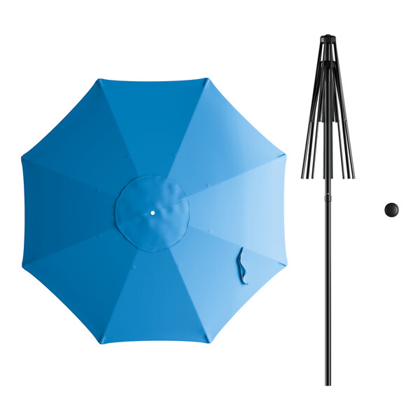 Lancaster Table & Seating 6' Round Pacific Blue Push Lift Black Steel Umbrella