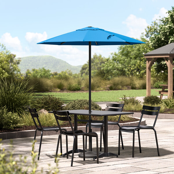 Enjoy the outdoors under the pleasant shade of this Lancaster Table & Seating 6' pacific blue push lift black steel umbrella!