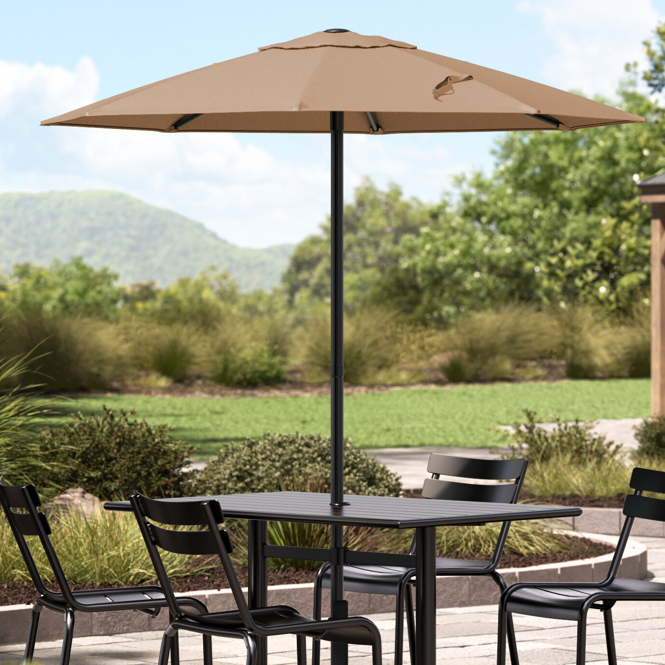 This umbrella's 6' span is perfect for shading a table from the sun. Designed to withstand weathering conditions, a single vent in this breathable canopy allows airflow to increase stability throughout the day. Expand your outdoor seating with ease and ensure your guests are comfortable and protected thanks to its reliable design.