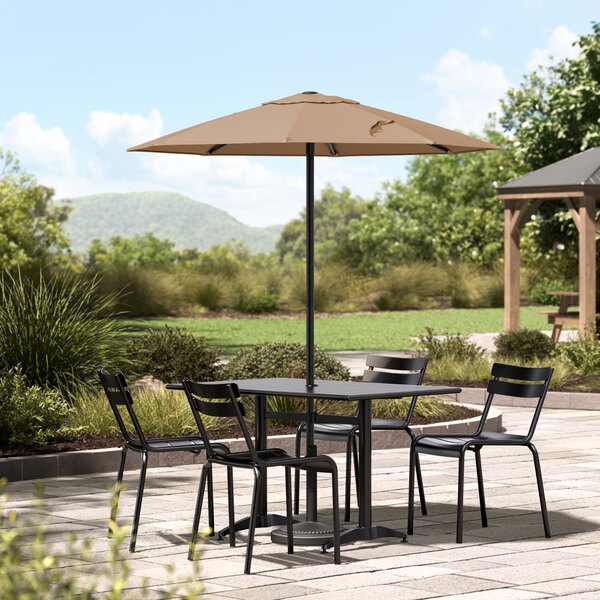 Enjoy the outdoors under the pleasant shade of this Lancaster Table & Seating 6' clay brown push lift black steel umbrella!