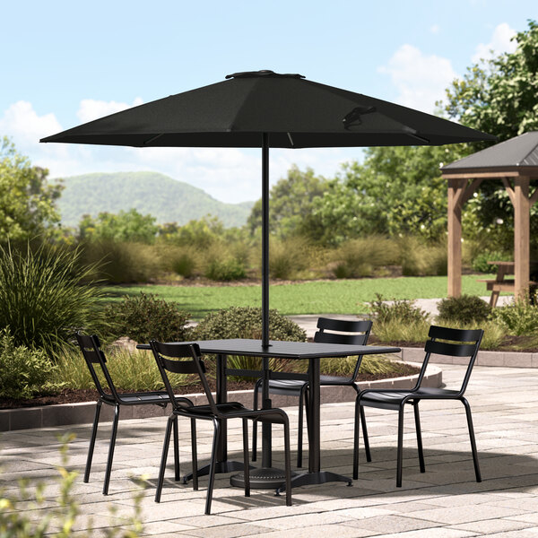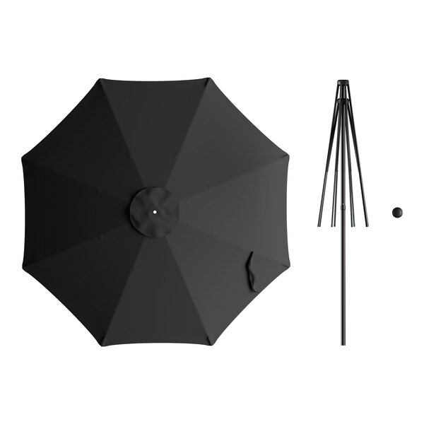 Lancaster Table & Seating 7 1/2' Round Coal Black Push Lift Black Steel Umbrella