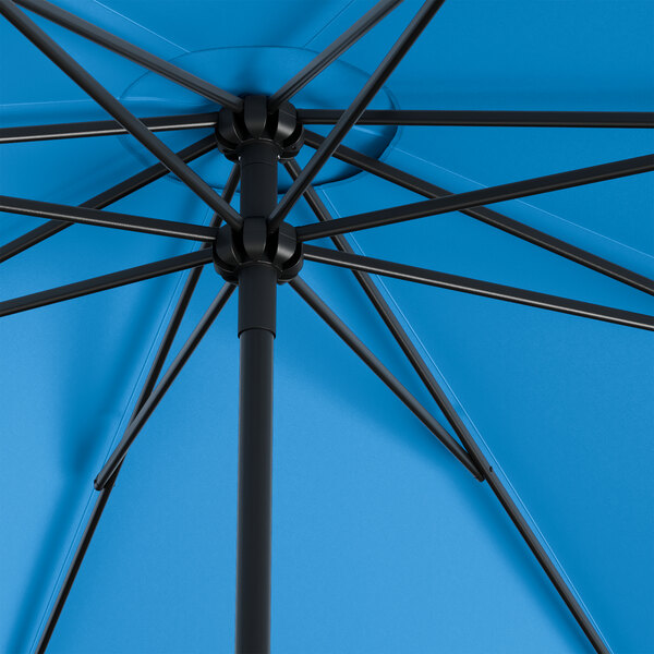 Enjoy the outdoors under the pleasant shade of this Lancaster Table & Seating 7 1/2' pacific blue push lift black steel umbrella!