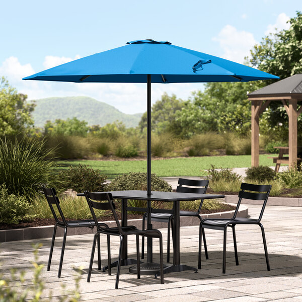 Lancaster Table & Seating 7 1/2' Round Pacific Blue Push Lift Black Steel Umbrella