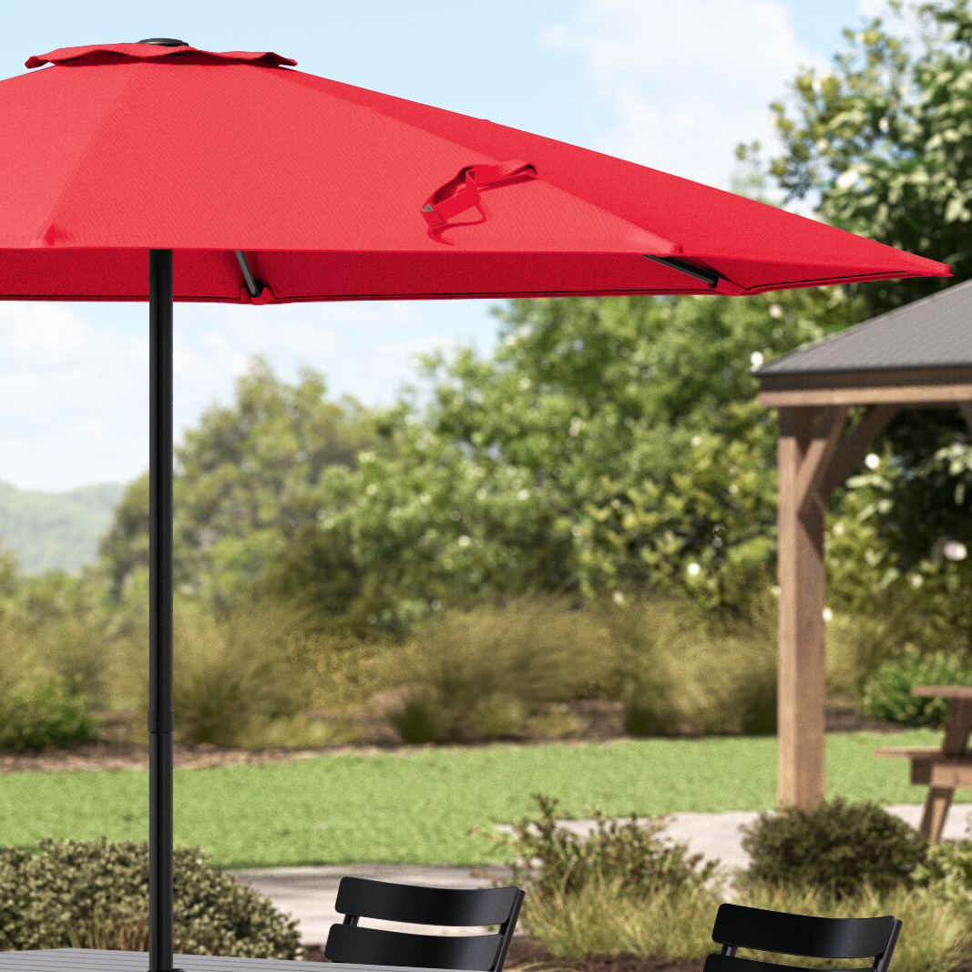 This umbrella's 7 1/2' span is perfect for shading a table from the sun. Designed to withstand weathering conditions, a single vent in this breathable canopy allows airflow to increase stability throughout the day. Expand your outdoor seating with ease and ensure your guests are comfortable and protected thanks to its reliable design.