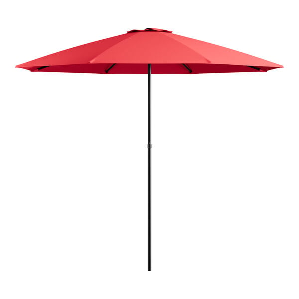 Lancaster Table & Seating 7 1/2' Round Poppy Red Push Lift Black Steel Umbrella