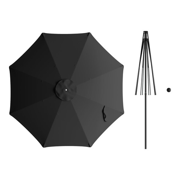 Lancaster Table & Seating 9' Round Coal Black Push Lift Black Steel Umbrella