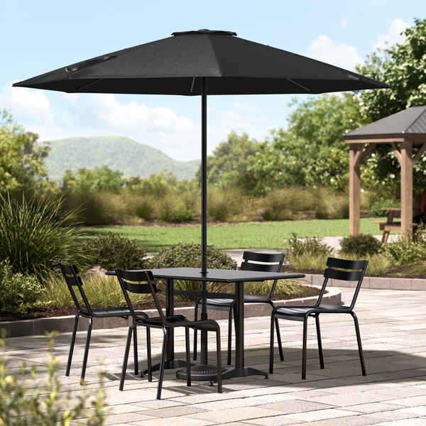 Enjoy the outdoors under the pleasant shade of this Lancaster Table & Seating 9' coal black push lift black steel umbrella!