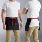 Take a step away from tradition with this Uncommon Chef 3103 burgundy poly-cotton Beltway waist apron with natural webbing and 3 pockets. This waist apron is perfect for the ultra-cool bartender, waiter, or busboy, offering a trendy look at a great price. Extra-long 43" web ties ensure a one-size-fits-most fit, while reinforced bar tacking guarantees durability. A deep three-section divided pocket makes it easy to store supplies such as guest checks, pens, straws, and receipts. At the same time, the waist styling of the apron protects clothes from splashes and other messes. Its short length offers coverage only where you need it, with the greatest movability.