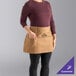 Take a step away from tradition with this Uncommon Chef 3103 caramel 100% cotton Beltway waist apron with natural webbing and 3 pockets. This waist apron is perfect for the ultra-cool bartender, waiter, or busboy, offering a trendy look at a great price. Extra-long 43" web ties ensure a one-size-fits-most fit, while reinforced bar tacking guarantees durability. A deep three-section divided pocket makes it easy to store supplies such as guest checks, pens, straws, and receipts. At the same time, the waist styling of the apron protects clothes from splashes and other messes. Its short length offers coverage only where you need it, with the greatest movability.