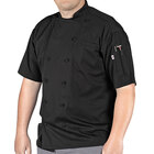 Dress your chefs in the best with this Uncommon Chef Aruba Pro Vent 0480 black lightweight customizable short sleeve chef coat with mesh back. Made from 5.3 oz. 65/35 poly-cotton fine line twill, this coat is lightweight, comfortable, looks professional, and is durable enough to stand up to any food service environment. Each jacket has short sleeves to keep staff members cool in hot commercial kitchens. A utility shoulder pocket is on the sleeve of each jacket and is the perfect spot to store thermometers or pens. Plus, it features a moisture-wicking mesh back to help keep employees cool in hot kitchens.