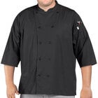 Dress your chefs in the best with this Uncommon Chef Epic 0975 unisex lightweight white 3/4 length sleeve chef coat with side vents. Made from a 5.25 oz. 65/35 poly-cotton blend, this jacket is lightweight, comfortable, looks professional, and is durable enough to stand up to any food service environment. Each jacket has 3/4 length sleeves which keep sleeves away from range tops and out of dishes. A utility shoulder pocket is on the sleeve of each jacket that is the perfect spot to store thermometers or pens. Plus, it features side vents that help keep employees cool in hot kitchens.