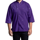 Dress your chefs in the best with this Uncommon Chef Epic unisex lightweight sky blue customizable 3/4 length sleeve chef coat with side vents 0975. Made from a 5.25 oz. 65/35 poly-cotton blend, this jacket is lightweight, comfortable, looks professional, and is durable enough to stand up to any food service environment. The poplin material is lighter, thinner, and smoother than a traditional twill chef coat. Each jacket has 3/4 length sleeves which keep sleeves away from range tops and out of dishes. A chest pocket and a utility shoulder pocket are perfect for storing thermometers or pens. Plus, it features side vents to help keep employees cool in hot kitchens.