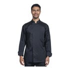 Uncommon Chef Genoa Unisex Customizable Black Long Sleeve Chef Coat with Silver Heather Mesh Back 0715HC - XS