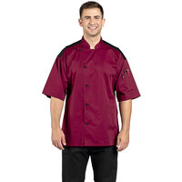 Dress your chefs in the best with this Uncommon Chef Rogue Pro Vent unisex lightweight royal blue customizable short sleeve chef coat with mesh back 0701. Made from a 5.3 oz. 65/35 poly-cotton fine line twill, this jacket is lightweight, comfortable, looks professional, and is durable enough to stand up to any food service environment. Each jacket has short sleeves to keep staff members cool in hot commercial kitchens. This jacket has a mitered breast pocket and utility shoulder pocket on the sleeve, which is the perfect spot to store thermometers or pens. Plus, it features a moisture-wicking black half mesh back that helps keep employees cool in hot kitchens.