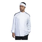 For the utmost convenience, this coat features a patch pocket to help keep any kitchen tools handy. Additionally, it has a thermometer pocket on its sleeve, providing the perfect spot to store supplies such as thermometers or pens. It features an asymmetrical left opening with a 5-snap closure and a mandarin collar, providing a clean, uniform look. Plus, it has a back neck tab to help secure apron straps.