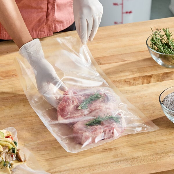 Securely sealing any solid or liquid product with a chamber vacuum packaging machine, this bag is designed to be frozen, refrigerated, or microwaved. Plus, it can withstand being boiled for up to 20 minutes, allowing you to use it to cook directly in water. The heat resistance of the bag makes it great for sous vide cooking as well as for storage applications.