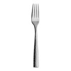 Bring a unique, modern touch to your tabletop with this the Varick Becki 8 1/8" 18/0 stainless steel heavy weight dinner fork from Steelite International! This fork is perfect for serving main entrees such as steak, chicken, or pasta. The eye-catching hammered design not only resists fingerprints and smudges but also adds a touch of sophistication to your tabletop setting, making a statement that won't go unnoticed by your guests. The high-quality mirror finish of this fork ensures that your culinary creations shine and sparkle, providing a professional and elegant touch to any dining experience.