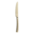 Create a bold, memorable tabletop presentation with this Varick Malcolm Champagne Gold from Steelite International 8" 18/0 stainless steel heavy weight dinner fork. This unique fork combines bold champagne gold color with modern aesthetics to create a timeless look that is sure to stand out. Its square handle design offers a sleek and eye-catching touch. Plus, this design is perfect for either casual or formal dining settings. It is also ideal for use at your cafe, restaurant, or catered event when serving main entrees such as steak, chicken, or pasta.