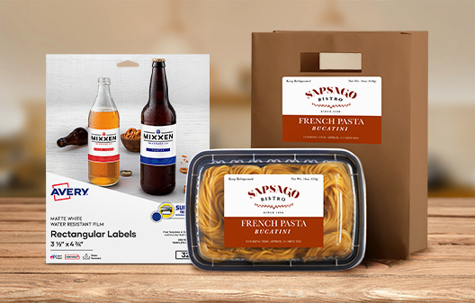 Add your logo, brand name, product name, and price to Avery® blank labels and apply them to retail items.